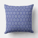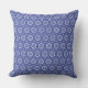 This is a square throw pillow featuring a repetitive, intricate geometric pattern in shades of blue and white/light cream. The design suggests a mandala-like or tile mosaic motif, giving it a classic yet vibrant look that could complement many decor styles.