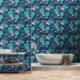 Bekijk dit ontwerp met een blauw tropisch floreel patroon.