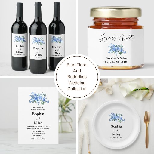 Blue Watercolour Floral Butterflies WeddingOntworpen door Creative K