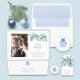 Dit ontwerp van de kerstinsteekkaart van het baby shower kenmerkt mijn eigen handbeschilderde illustraties van de waterverf (de vezeltak en de blauwe en witte buibel met bogen).