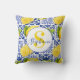Blue White Lemon Tile Pattern Citrus Monogram Name Kussen