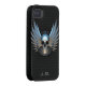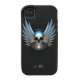 Blauwchroomschedel op een honingraatachtergrond met aanpasbaar type.
