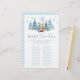 Voeg een vleugje elegantie toe aan uw winterthema babyjongensdouche met onze geavanceerde "Baby Name Race" -game. Met een charmante teddybeer die schattig pet en een sjaal draagt, een blauwe ballon vasthoudt en wordt omringd door pijnbomen en sneeuwvlokken. Deze heerlijke activiteit is perfect voor het vermaken van uw gasten en het creëren van blijvende herinneringen. Ideaal voor het toevoegen van plezier en opwinding aan uw speciale feestelijke baby-feest!