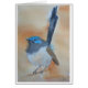 Deze blauwe vrouw werd gefotografeerd in Tasmanië door een zeer speciale vriend die me vervolgens vroeg om de foto te schilderen. Het prachtige blauw op de poppen tegen de oranje achtergrond als de lijnen tussen de vogel en de achtergrond prachtig blauw. Deze kaart ziet er ook geweldig uit in een lijst.