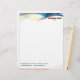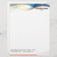 Waves and geometric shapes in blue, yellow, white, black, and a dash of orange make eye-catching borders at the top and bottom of this letterhead. Very sharp and professional-looking!