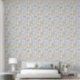 Blue Yellow Mid-Century Abstract Cat Pattern Behang
