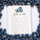 Schattige baby shower uitnodigingskaart met waterverf illustratie van bosbessen. De tekst zegt: "Er komt een beszoete baby aan." Overeenkomende objecten beschikbaar.