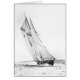 De Canadese visschoener heeft nooit een race verloren tegen anderen van haar soort. Hier zie je dat ze de finish oversteekt zonder dat er een concurrent in zicht is. Dit trotse schip van Nova Scotia staat nu op de achterkant van een Canadese munt. Dit afbeelding van het publieke domein is gereinigd, verbeterd en in een potloodschets teruggegeven.