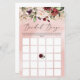 Blush Pink and Burgundy Floral Vrijgezellenfeest Bingo Game met zachte roze achtergrond