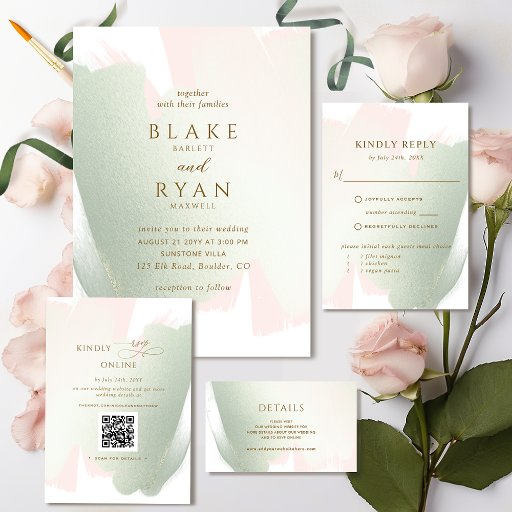 Blush Pink and Sage Green Brush Strokes WeddingOntworpen door Gabriela G.
