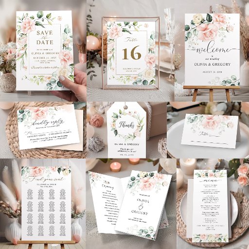 Blush Pink Rose Floral WeddingOntworpen door Anna Yun