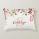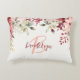 Dit elegante gepersonaliseerde accentkussen heeft een monogram en een voornaam in modern roze en bordeauxrood schrift. Een waterverf arrangement van blush roze en bordeauxrode bloemen en groen siert de bovenste rand.