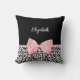 Blush Pink Bow Zwart Wit Leopard Print Patroon Kussen