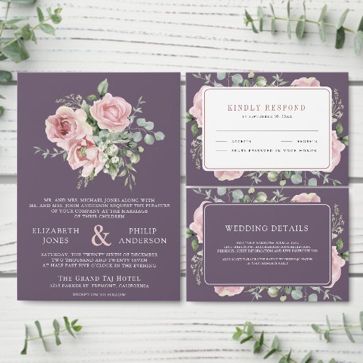 Blush Pink Floral Eucalyptus Dusty Purple WeddingOntworpen door Shabbir D