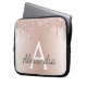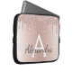Blush Pink Rose Gold Metallic Glitter Monogram Laptop Sleeve