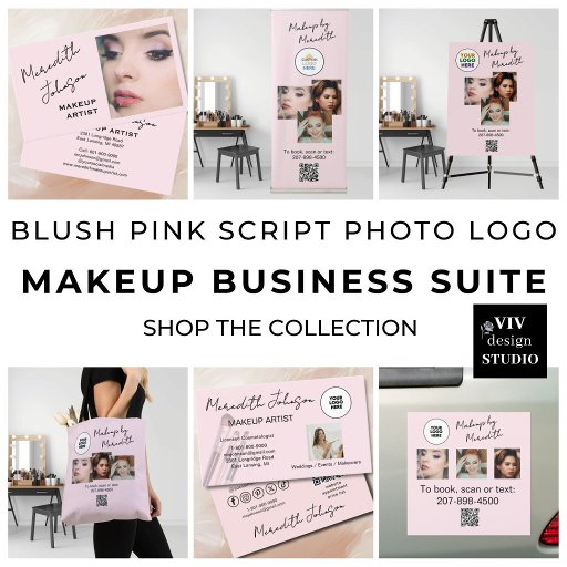 Blush Pink Script Photo Logo Makeup Business SuiteOntworpen door Vivian Dye