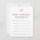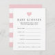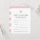 Laat de gasten van het baby shower hun best doen bij de geboortedatum en -tijd, het gewicht en de lengte van het meisje. Plaats een stapel bij de ingang aan de gebeurtenis, ga hen rond, of verlaat bij elke plaats het plaatsen. Maakt ook een leuk hoepenbelang voor de moeder-te-zijn, wanneer gecompileerd in een doos of een multomap. Het ontwerp is voorzien van een wazig roze hart bovenaan met moderne zwarte letters en een zwart en wit stroperpatroon aan de achterzijde.