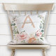Blush Roze & Gray Floral Wreatname Monogram Kussen