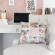 Pas dit toe werpen kussen met acht vierkante foto's die in een lay-out van de roostercollage worden geschikt, met uw enig initiaal monogram in wazige roze in het centrumvierkant. De piloot keert aan een subtiel gestippeld diamantpatroon in gelijke lichtroze en wit om.