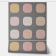 Dit ontwerp heeft een modern gestructureerd geometrisch motief met stoffig roos, blush roze, zacht koraal, perzik sinaasappel, oorlog, geel en ivoor afgeronde vierkanten op een grijs gekleurde achtergrond. Het patroon is zowel als elegant en straalt een funky hipster essentie uit. Het is een verfijnd en chique ontwerp dat eclectisch minimalisme vertegenwoordigt, ideaal voor artistieke interieurontwerpers, liefhebbers van huisdecors, trendsetters en liefhebbers van , retro of abstracte digitale geometrische patronen. Dit maar trendy hipsterpatroon is veelzijdig en wordt aangeboden op een reeks eigentijdse producten voor huisdecoratie, geschikt voor het verbeteren van de sfeer van verschillende ruimtes zoals hoofdslaapkamers, keukens, woonkamers, mannen grotten, universiteitsslaapzalen, condominiums, studio's of appartementen.
