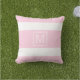 Blush roze, witte strepen Eenvoudig monogram op ma Buitenkussen