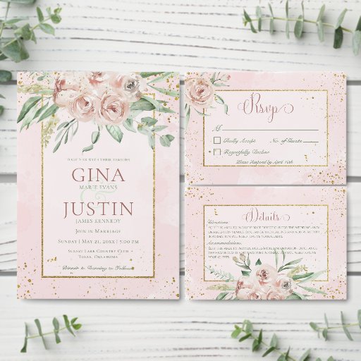 Blush Roses & Gold Accents Wedding Suite CardsOntworpen door Kathe Santillo