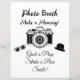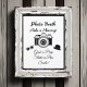 Zwart-wit camerafotocabine teken. Maak een herinnering, pak een rekwisiet en raak een pose! Trouwbord.