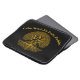Een serene gouden Boeddhafiguur zit met gekruiste benen onder een ingewikkeld ontworpen boom met wervelende takken.