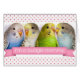 Vier jonge paraketten (groen, blauw, wit, geel) worden prachtig geschilderd met al het gecompliceerde patroon op hun plumage. De details van dit realistische schilderij zijn zo geweldige dat het een groot geschenk zal zijn voor boedgie-huiseigenaars en kleine papegaaien.