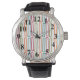 Dit mannen horloge heeft een middeleeuws ontwerp van zich herhalende rechthoeken in blauwgroen, sinaasappel, biet en sinaasappel op een veld van wit. Als je het ontwerp leuk vindt, maar liever verschillende kleuren hebt, stuur me dan een bericht.