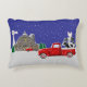 Boerderij Animal Stack in Little Red Truck Accent Pillow. Het originele "Little Red Truck" kunstwerk van Rick Ellinger. Veehouderij en windmolen in de winter scène met sneeuwval. Boerderij dierlijke stapel omvat koe, varkens en kippen.