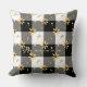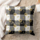 Retro trendy boerderijstijl roestrijk land gooit kussen met een waterverf zonnebloempel verspreid over een trendy zwarte en witte gingham plechtige achtergrond. +++++++Eenvoudig om met uw familienaam en monogram initiaal te personaliseren. ++++++++++ het Overeenkomende producten beschikbaar in het collectie.