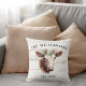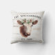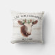 Boerderij Highland Koe Familienaam Sierkussen - kussen beschikt over een Highland koe met een bloemkroon op een rustieke houten achtergrond. Voeg een vleugje boerenland toe aan elke kamer. Getoond met witte houten achtergrond. Ook verkrijgbaar in donker hout.
