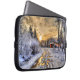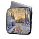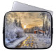 Boerderij in wintersneeuw op zonsopgang laptop sleeve