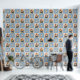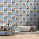 Boerderij Kip Bloemen Boerderij Blauwe vierkanten Behang