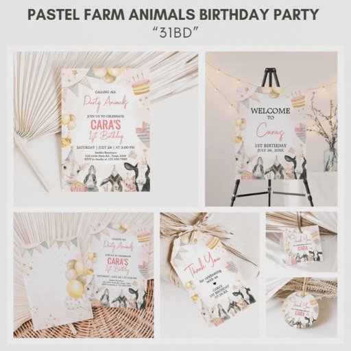 Pastel Farm Animals Birthday PartyOntworpen door Camille R