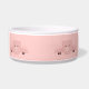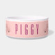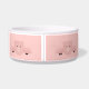 Een gepersonaliseerde huisdier kom met een tekening van een schattig roze varken gezicht. Opgelicht door zijn zwarte gespleten hoeven en naar je kijken. Schattige en grillig tekenen. Gelegen op een roze achtergrond met hier en daar wat vervaagde harten.