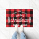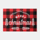 Farmhouse red plaid buffalo check Merry Kerstdoormat. Dit portret is ontworpen in een boerderij en feestelijke kerstblik, de achtergrond is rood en zwart gebuffel met witte tekst, versierd met wit grafisch blad.