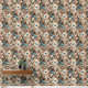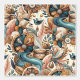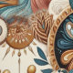 Natuur-geïnspireerde, vrijgevochten, illustratieve olieverfschilderij in Boheemse stijl is voorzien van bloemen en een mix van patronen en texturen op een crème, mosterdgeel, blauwgroen en magenta achtergrond, ideaal voor elk feest en decor geschenken.