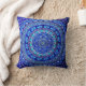 Blauw boheems stijl kussen met olifantencirkels erop.