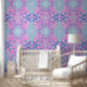 Bohemian Chintz Illustratie Roze Blauw Wit Behang