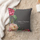 Een mooi kussen met een donkergrijze achtergrond en een herhaald botanisch plum en een roze geverfd bloempatroon. Gepersonaliseerd met je namen en/of datum, zou het een perfect cadeau zijn voor een jubileum of bruiloft. Zie voor meer kussens de Knots & Kisses Shop.