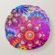 Boheemse abstracte bloemprintkussen. In kleuren blauw, roze, oranje, groen, blauw, geel en paars.
