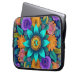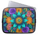 Make your laptop stand out with this colorful boho bloom mandala laptop sleeve. Personalize with your monogram or Christian name - if you like. Featuring a dazzling centerpiece of turquoise petals and a golden floral core, this design is surrounded by an explosion of bright orange, purple, teal, and pink flowers, all set against a rich, deep navy background. Perfect for those who love vibrant colors, nature-inspired art, and one-of-a-kind accessories. Great gift for creatives and flower lovers. Dress your (or their) laptop in color and creativity with this eye-catching floral case! Designed by Best Baby Gifts - created with love.