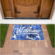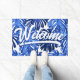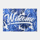 Boho Blue White Tropical Leaves Script Welkom Deurmat
