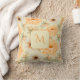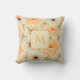 Een boho botanische waterverf kussen met een crème sinaasappel bloemig ontwerp geaccentueerd met geel en beige tinten, met chique bloemetjes en een stijlvolle initiaal, trendy elegante rustieke look in aardse terracotta tinten, ideaal voor herfst, herfst, voorjaar, zomer of winterdecor.