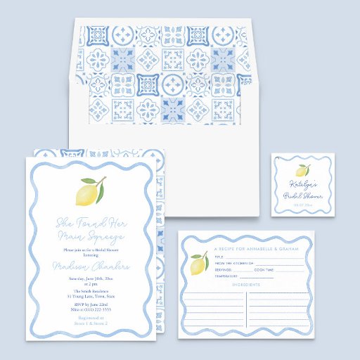 Druk uw dankbaarheid uit met onze elegante vrijgezellenfeest bedankpas, met een handgetekende lichtblauwe golvende rand, een eenvoudige enkele citroen en een waterverf blauw met witte tegel op de achterkant. Alle elementen zijn met de hand door mij geschilderd. Personaliseer met je eigen tekst en foto.