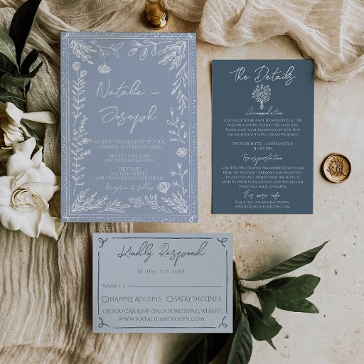 Azure Blue Hand Drawn Wedding Floral SuiteOntworpen door marouane boukouyen