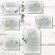 Dit ontwerp is voorzien van een eenvoudige, zachte bovenste losse boeket van botanische groen met een witte boeg op een zachte groene blauwe ovale en witte achtergrond. Het is delicaat en elegant. Het is creëer door Simply Farmhouse Press en maakt deel uit van het Boho Delicate Greenery Modern Floral Wedding-pakket van kaarten.