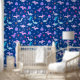 Boho dinosaurussen kleurrijke donkerblauwe kwekeri behang